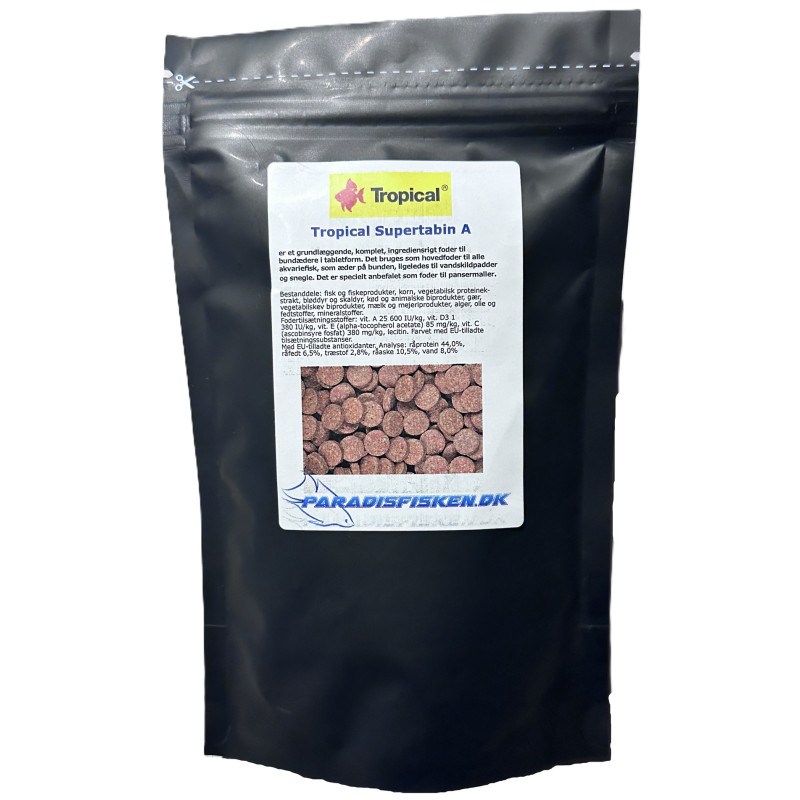 Tropical Vegetabin A - en såkaldt klædende mallepille, som kan sættes fast på akvarieruden. Kan både bruges som fuldfoder til planteædende fisk og som supplement til altædende fisk og ungfisk.