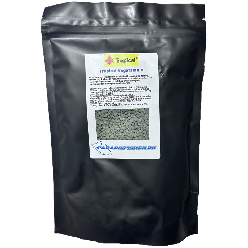 Tropical Vegetabin B - en hurtigtsynkende mallepille. Kan både bruges som fuldfoder til planteædende fisk og som supplement til altædende fisk og ungfisk.